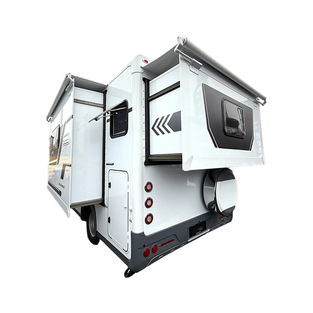 When parked, the mechanism expands the RV compartment outward—creating extra living or storage space. When in transit, it retracts smoothly into place, preserving the vehicle’s aerodynamics and safety. The system operates on DC 12V power with low current consumption, making it compatible with standard RV power systems.